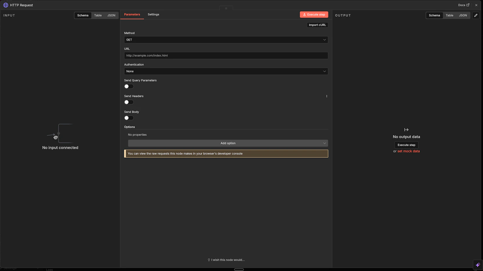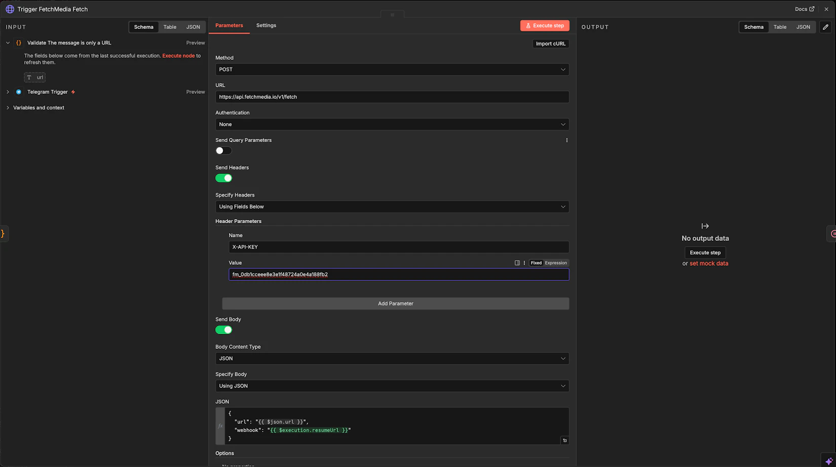 Now, let's configure the HTTP Request node to send a request to the FetchMedia API.